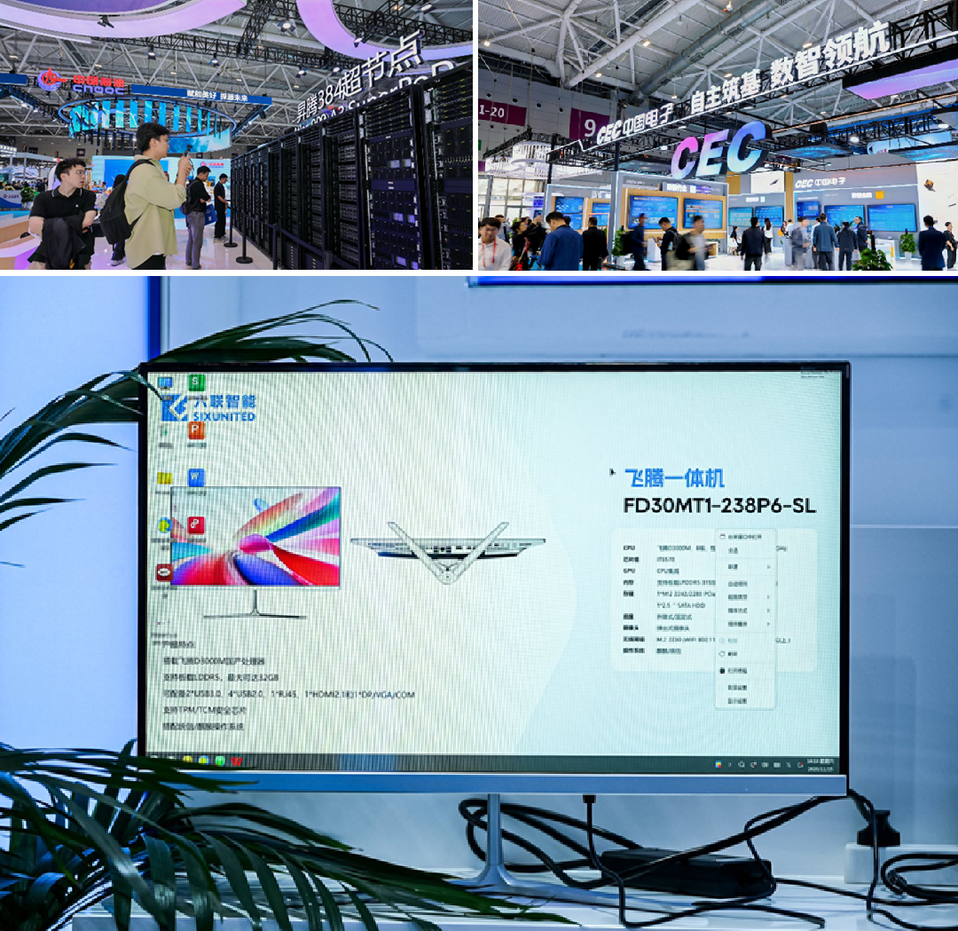 六联智能的技术突破还体现在全链条国产化:台式机搭载飞腾D3000、兆芯KX-7000处理器,支持DDR5内存扩展至128GB,可本地运行轻量化AI应用。同时适配麒麟、统信系统,通过TPM安全芯片实现端到端保护;仅手掌大小的“盒子”内置飞腾E2000Q处理器,支持千兆网与WiFi 6双模,既作家庭娱乐中心,又化身酒店智能终端;笔记本采用兆芯KX-U6780A处理器,LPDDR5内存与75Wh电池实现12小时续航;一体机整合国产软硬件,支持触控升降底座,成为智慧教室的“双担当”;云平板搭载紫光展锐T820处理器,配合5G模块实现秒级云存储访问;标准板适配龙芯3A6000,接口丰富适用各种扩展设备,满足不同使用场景需求;OPS-C插拔式架构则为智能会议提供安全可靠方案。